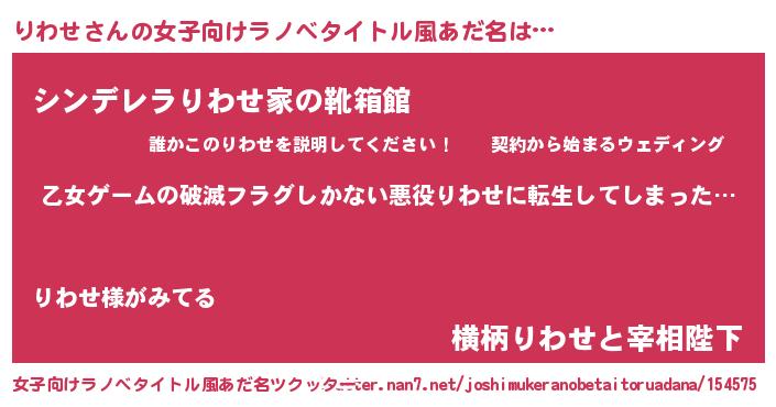 | 男性向けラノベタイトル風あだ名 | 『この素晴らしい世界にりわせを!』 |
