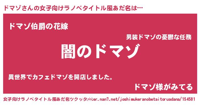 | 男性向けラノベタイトル風あだ名 | 『Re:ドマゾから始める異世界生活』 |