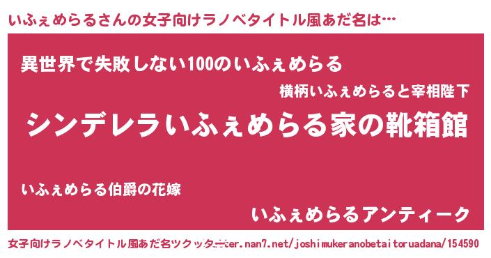 | 胡散臭い通販商品みたいなあだ名 | 『来世でも幸せになれる健康食品…その名も「いふぇめらる」』 |