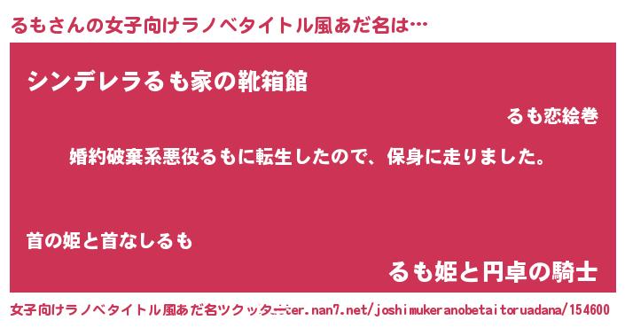 | 男性向けラノベタイトル風あだ名 | 『転生したらるもだった件』 |