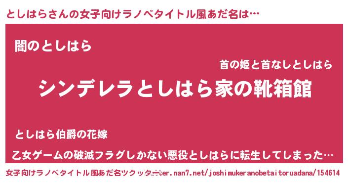 | 意味不明あだ名 | 『自称としはら』『としはらフォーエバー』 |