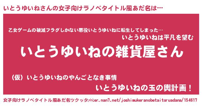 | 男性向けラノベタイトル風あだ名 | 『やはりいとうゆいねの青春ラブコメはまちがっている 』 |