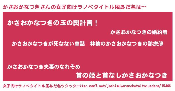 | 意味不明あだ名 | 『住所不定無職かさおかなつき(62歳)』 |