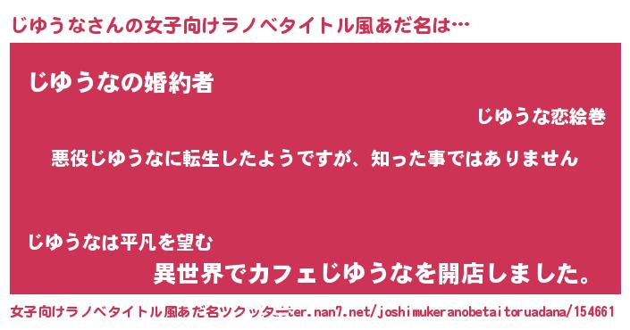 | 胡散臭い通販商品みたいなあだ名 | 『あなたにだけ特別に提供する100年もののヴィンテージワイン…その名も「じゆうな」』 |