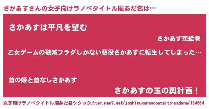 | 男性向けラノベタイトル風あだ名 | 『魔弾の王とさかあす』 |