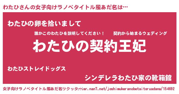 | 男性向けラノベタイトル風あだ名 | 『わたひという概念が存在しない退屈な世界 』 |