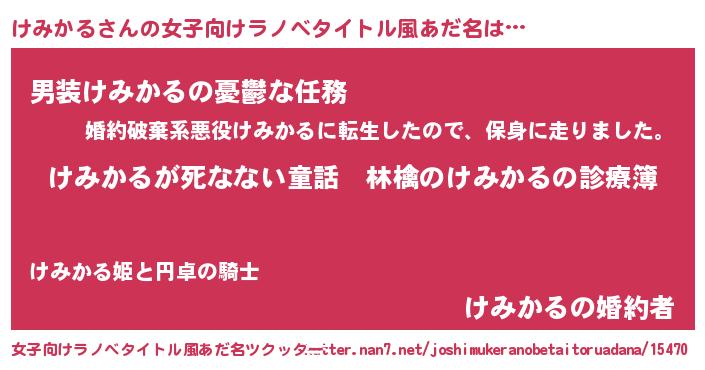 | 意味不明あだ名 | 『住所不定無職けみかる(11歳)』 |