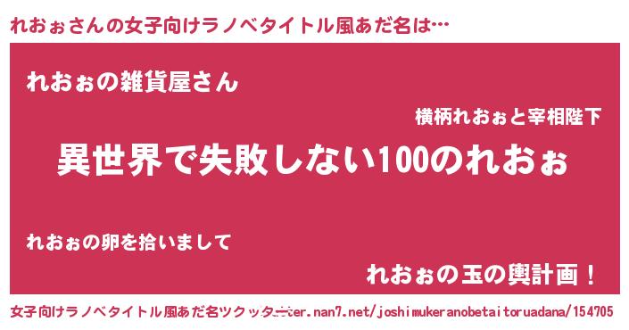 | 男性向けラノベタイトル風あだ名 | 『れおぉという概念が存在しない退屈な世界 』 |