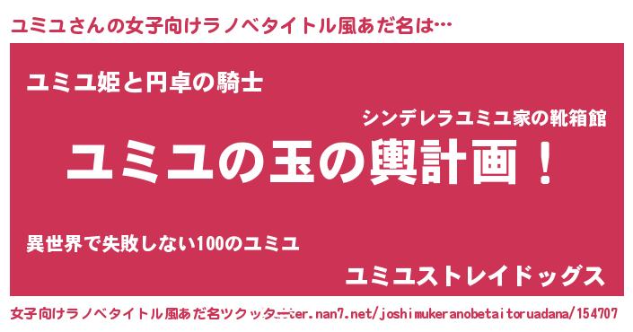 | ヒーロー風カッコイイあだ名 | 『スーパーユミユ』『サイバー戦士ユミユ』 |