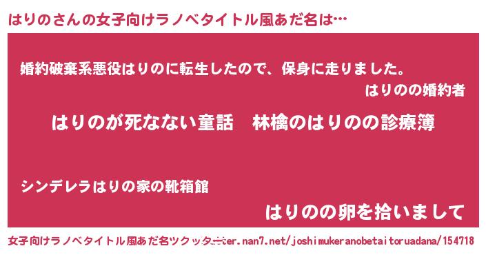 | 男性向けラノベタイトル風あだ名 | 『魔弾の王とはりの』 |
