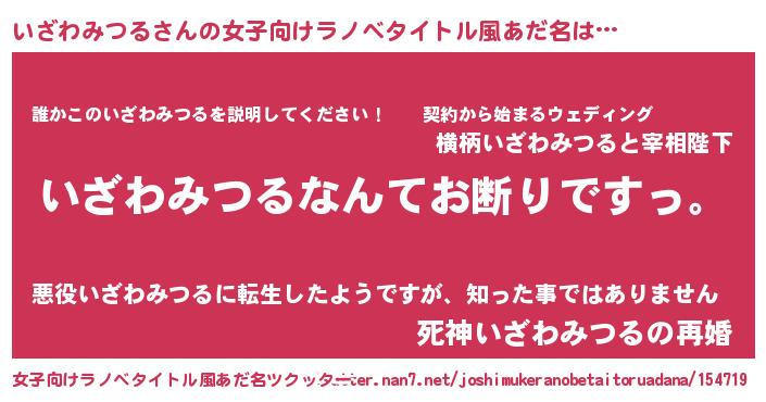 | 男性向けラノベタイトル風あだ名 | 『魔法科高校のいざわみつる』 |