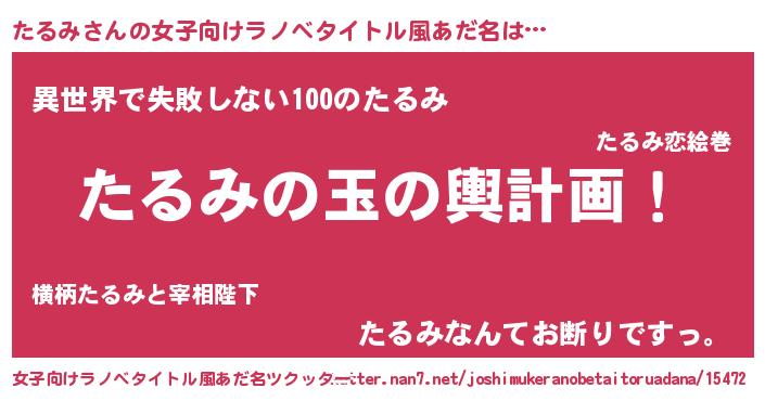 | 胡散臭い通販商品みたいなあだ名 | 『前代未聞の健康食品…その名も「たるみ」』 |