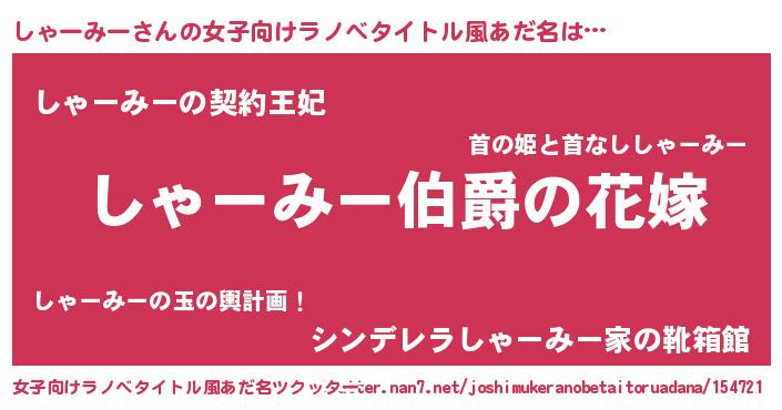 | 胡散臭い通販商品みたいなあだ名 | 『世界が平和になる高級そうな壺…その名も「しゃーみー」』 |