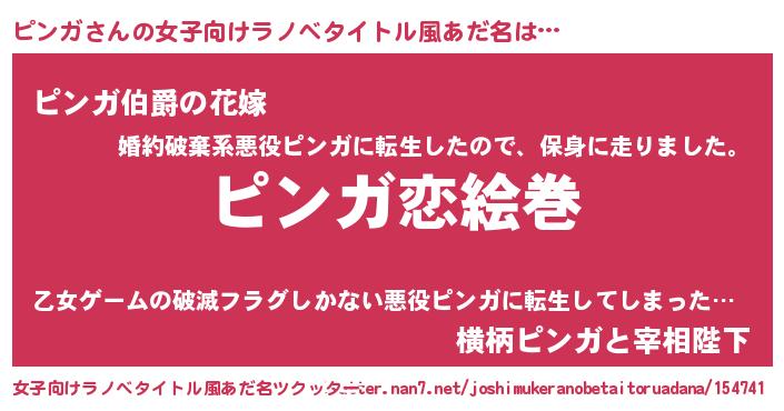 | ヒーロー風カッコイイあだ名 | 『愛の使者ピンガ』『ウルトラピンガマン』 |