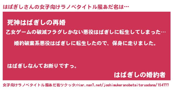| 男性向けラノベタイトル風あだ名 | 『転生したらはばぎしだった件』 |