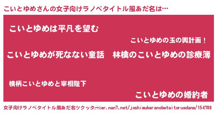 | 意味不明あだ名 | 『住所不定無職こいとゆめ(13歳)』 |