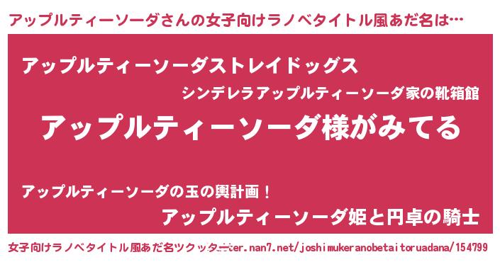 | 意味不明あだ名 | 『とにかく怪しいアップルティーソーダ』 |