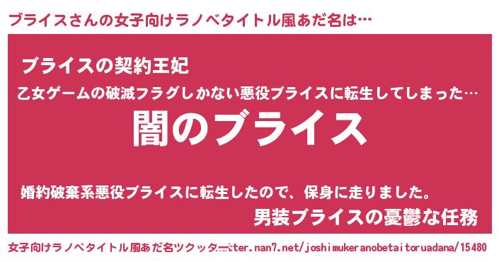 | 男性向けラノベタイトル風あだ名 | 『Re:ブライスから始める異世界生活』 |