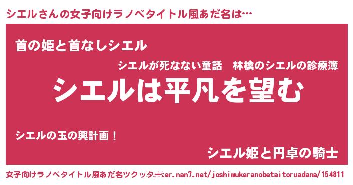 | 恥ずかしいあだ名 | 『シエリンリン』『プリティーシエル』 |