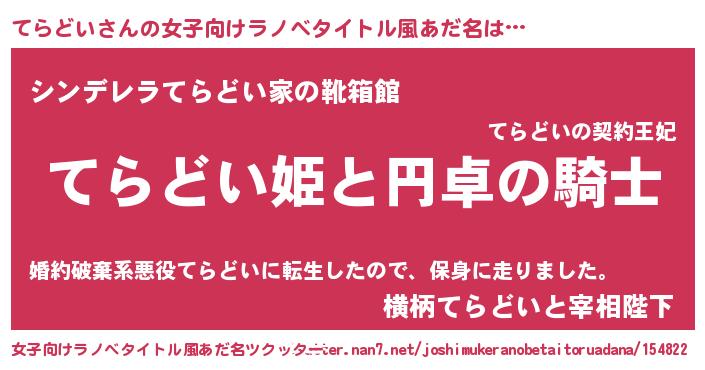 | 男性向けラノベタイトル風あだ名 | 『テラドイアートオンライン』 |