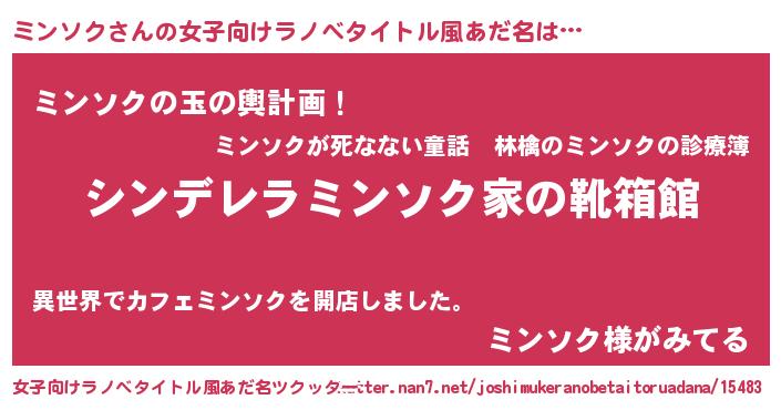 | 胡散臭い通販商品みたいなあだ名 | 『信頼と実績のサプリメント…その名も「ミンソク」』 |