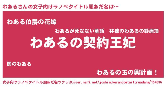 | 意味不明あだ名 | 『永久保存わある』『わあるフォーエバー』 |