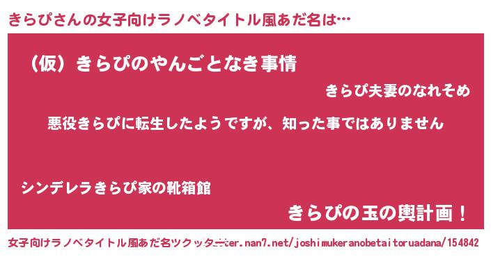 | 胡散臭い通販商品みたいなあだ名 | 『あなたにだけ特別に提供する限定10本のレアな日本酒…その名も「きらぴ」』 |