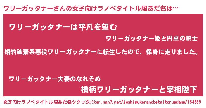| 男性向けラノベタイトル風あだ名 | 『ワリーガッタナースレイヤー』 |