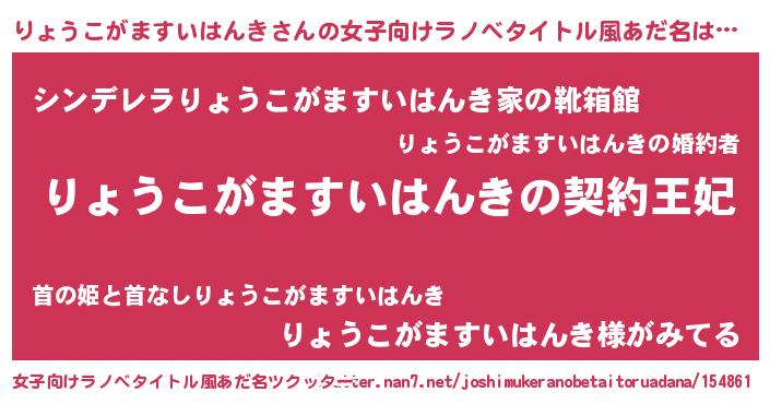 | 男性向けラノベタイトル風あだ名 | 『誰もが恐れるあのりょうこがますいはんきが、ぼくの専属メイドになるようです。』 |
