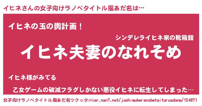 | ヒーロー風カッコイイあだ名 | 『正義の使者イヒネ』『仮面イヒダー』 |
