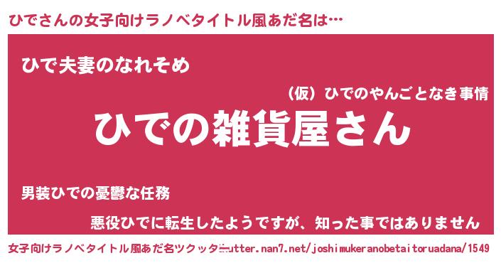 | 男性向けラノベタイトル風あだ名 | 『やはりひでの青春ラブコメはまちがっている 』 |