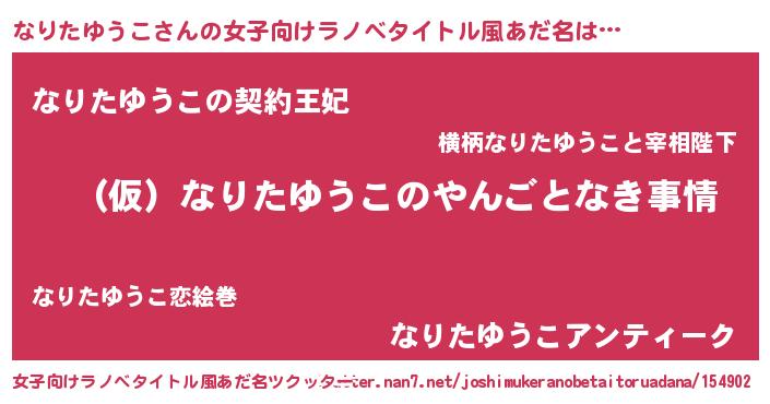 | 男性向けラノベタイトル風あだ名 | 『なりたゆうこの憂鬱』 |