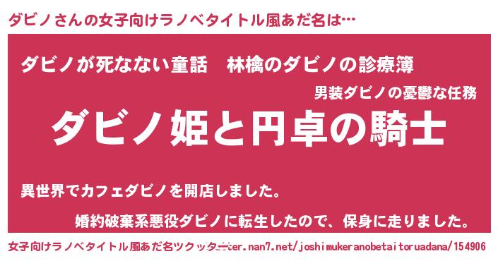 | 男性向けラノベタイトル風あだ名 | 『ダビノアートオンライン』 |