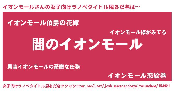 | 男性向けラノベタイトル風あだ名 | 『Re:イオンモールから始める異世界生活』 |