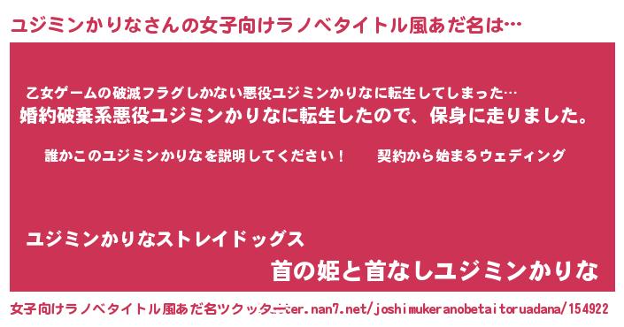 | 男性向けラノベタイトル風あだ名 | 『ユジミンカリナアートオンライン』 |