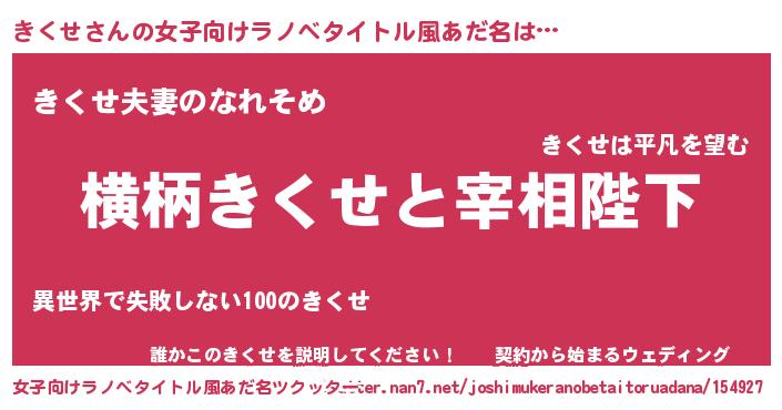 | 男性向けラノベタイトル風あだ名 | 『きくせに滅ぼされるだけの簡単なお仕事です』 |
