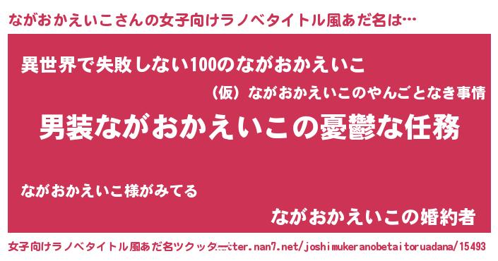| 男性向けラノベタイトル風あだ名 | 『うちのながおかえいこが世界を掌握している!』 |