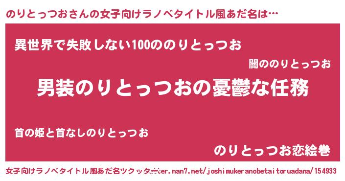 | ヘコむあだ名 | 『のりとっつお(小並感)』『酢こんぶ』 |