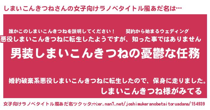 | 男性向けラノベタイトル風あだ名 | 『うちのしまいこんきつねが世界を掌握している!』 |