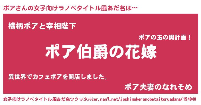 | 男性向けラノベタイトル風あだ名 | 『やはりポアの青春ラブコメはまちがっている 』 |