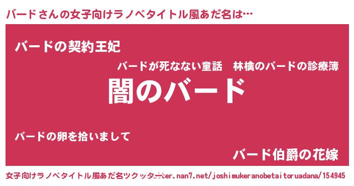 | ヘコむあだ名 | 『バード(笑)』『なまこ酢』 |