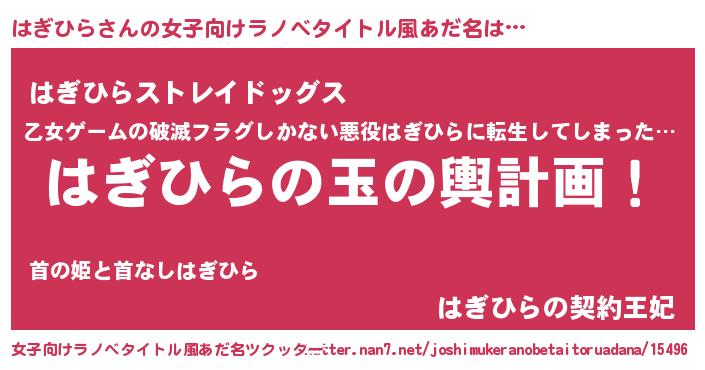 | ヘコむあだ名 | 『はぎひら(小並感)』『はぎ太郎』 |