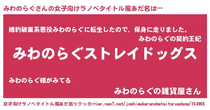 | 意味不明あだ名 | 『自称みわのらぐ』『永久保存みわのらぐ』 |