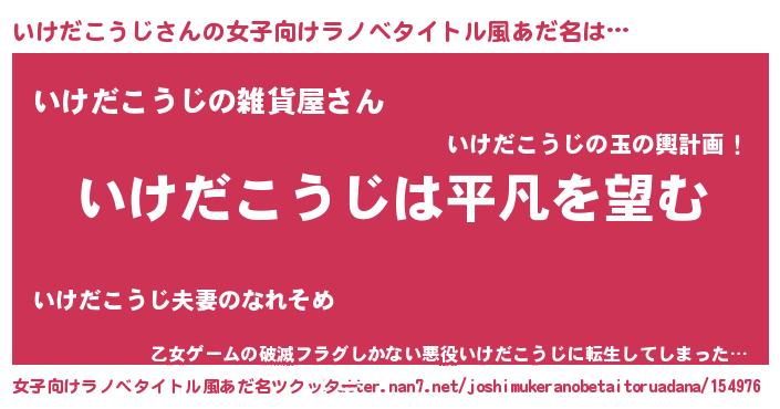 | 男性向けラノベタイトル風あだ名 | 『ダンジョンにいけだこうじを求めるのは間違っているだろうか』 |