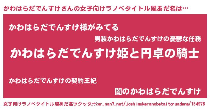 | 男性向けラノベタイトル風あだ名 | 『かわはらだでんすけの憂鬱』 |