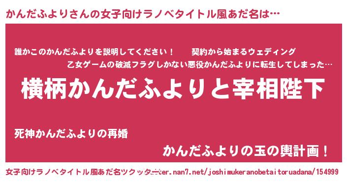 | 男性向けラノベタイトル風あだ名 | 『かんだふよりに滅ぼされるだけの簡単なお仕事です』 |