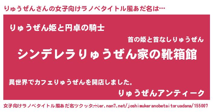 | 男性向けラノベタイトル風あだ名 | 『冴えないりゅうぜんの育てかた』 |