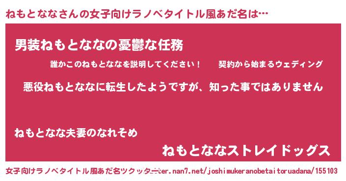 | 意味不明あだ名 | 『住所不定無職ねもとなな(11歳)』 |
