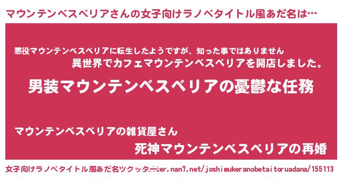 | 意味不明あだ名 | 『住所不定無職マウンテンベスベリア(89歳)』 |
