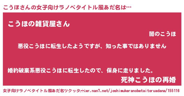 | 意味不明あだ名 | 『住所不定無職こうほ(6歳)』『自称こうほ』 |